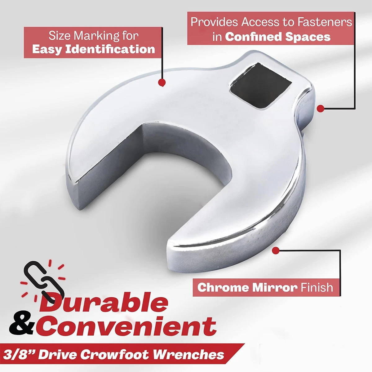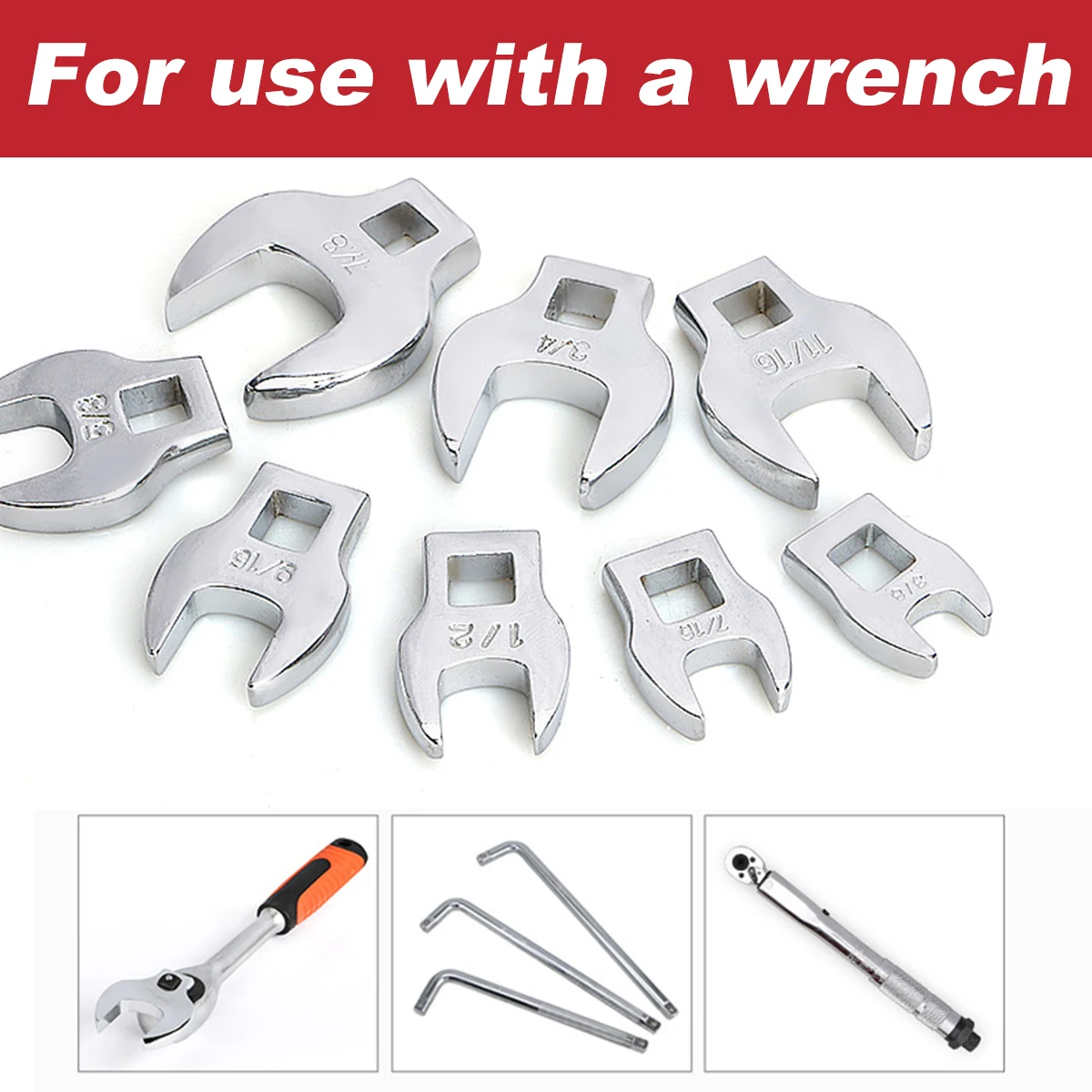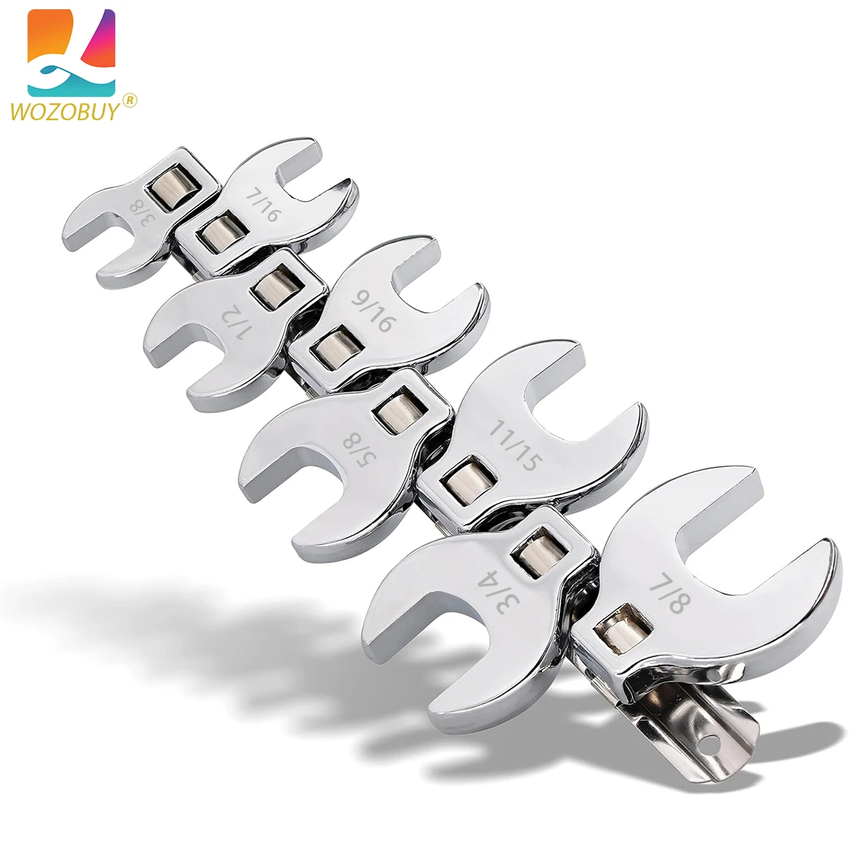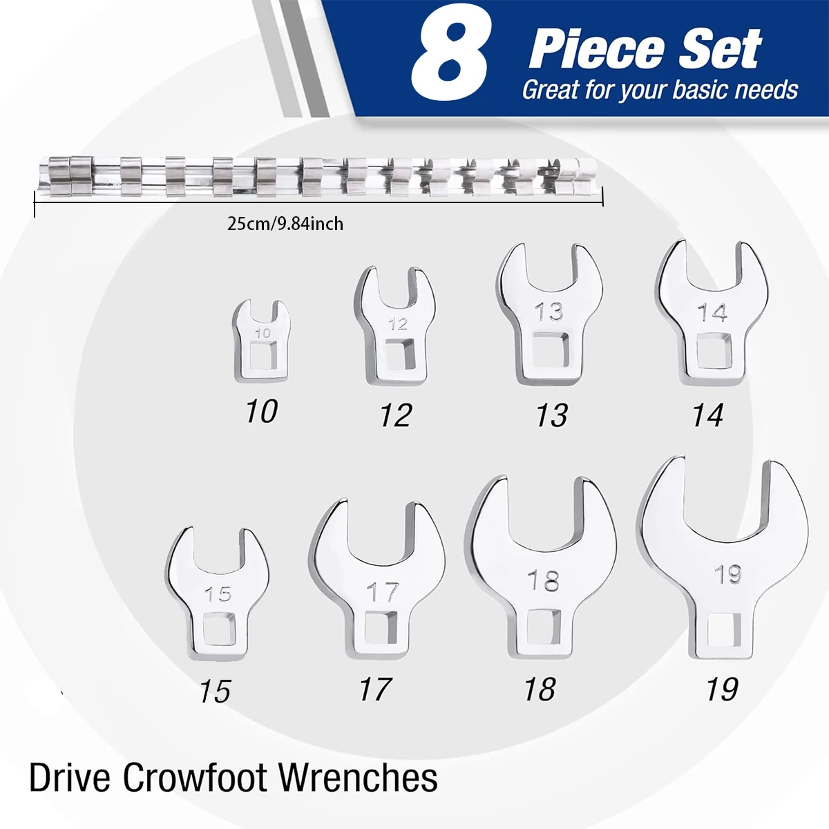 8Pcs Drive Crowfoot Wrench Set Inch/Metric Chrome Plated Crow Foot Metric Keys Set Multitool
