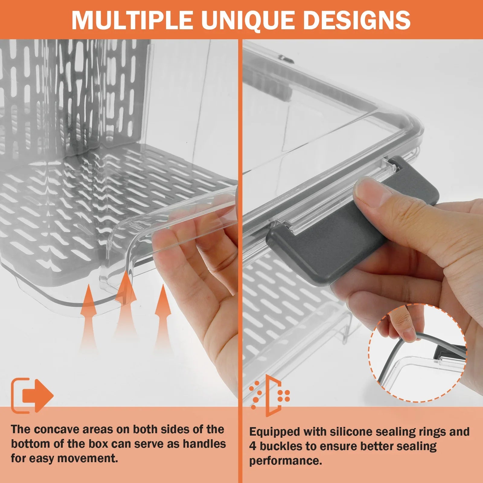 Removable Baffle: There is a detachable baffle in the box. It can be a partition to compartmentalized different food for better sorting or organizing. Drain hole design helps remove extra water when washing fruit or vegetable.