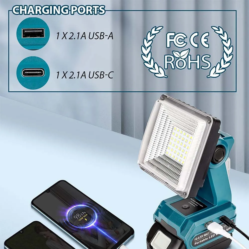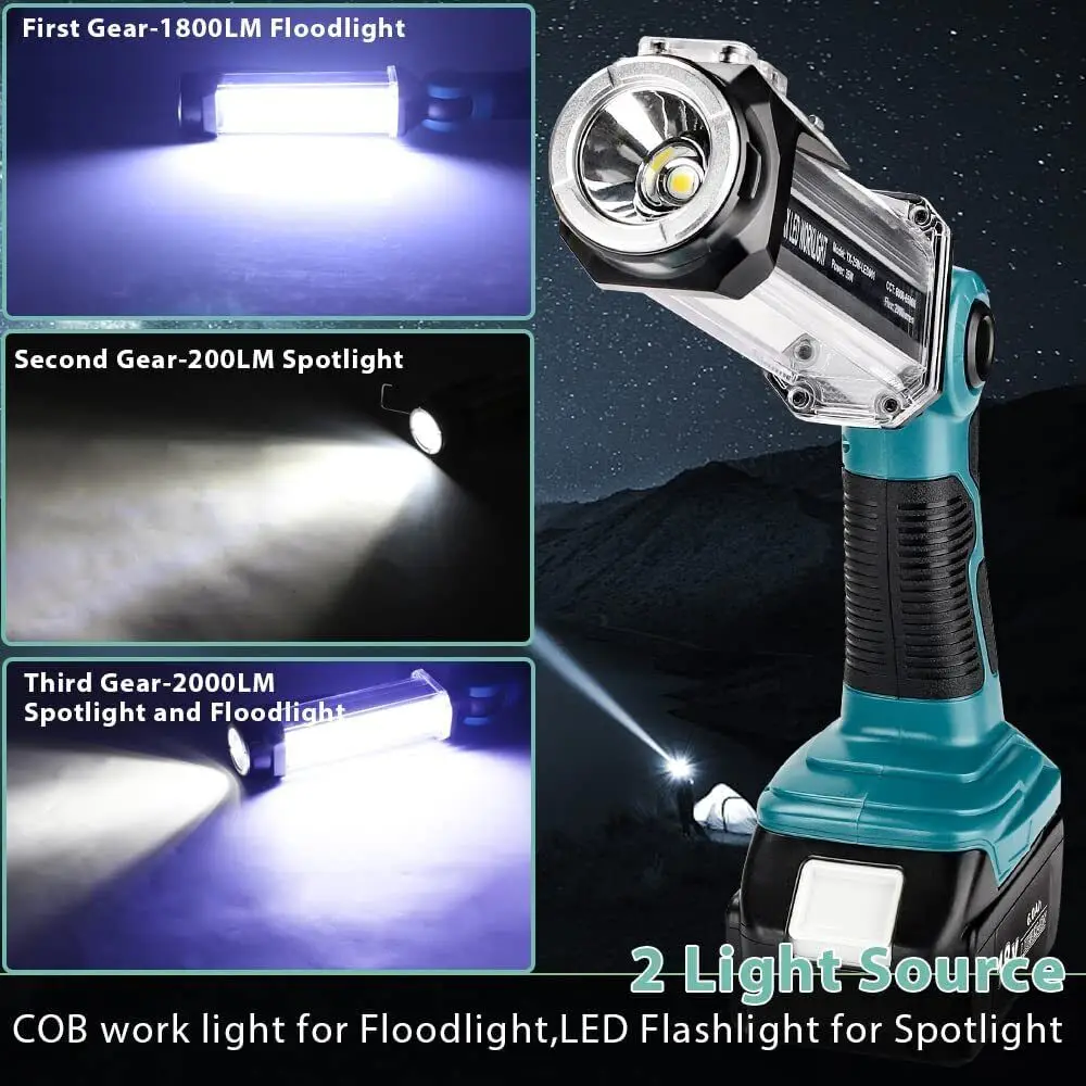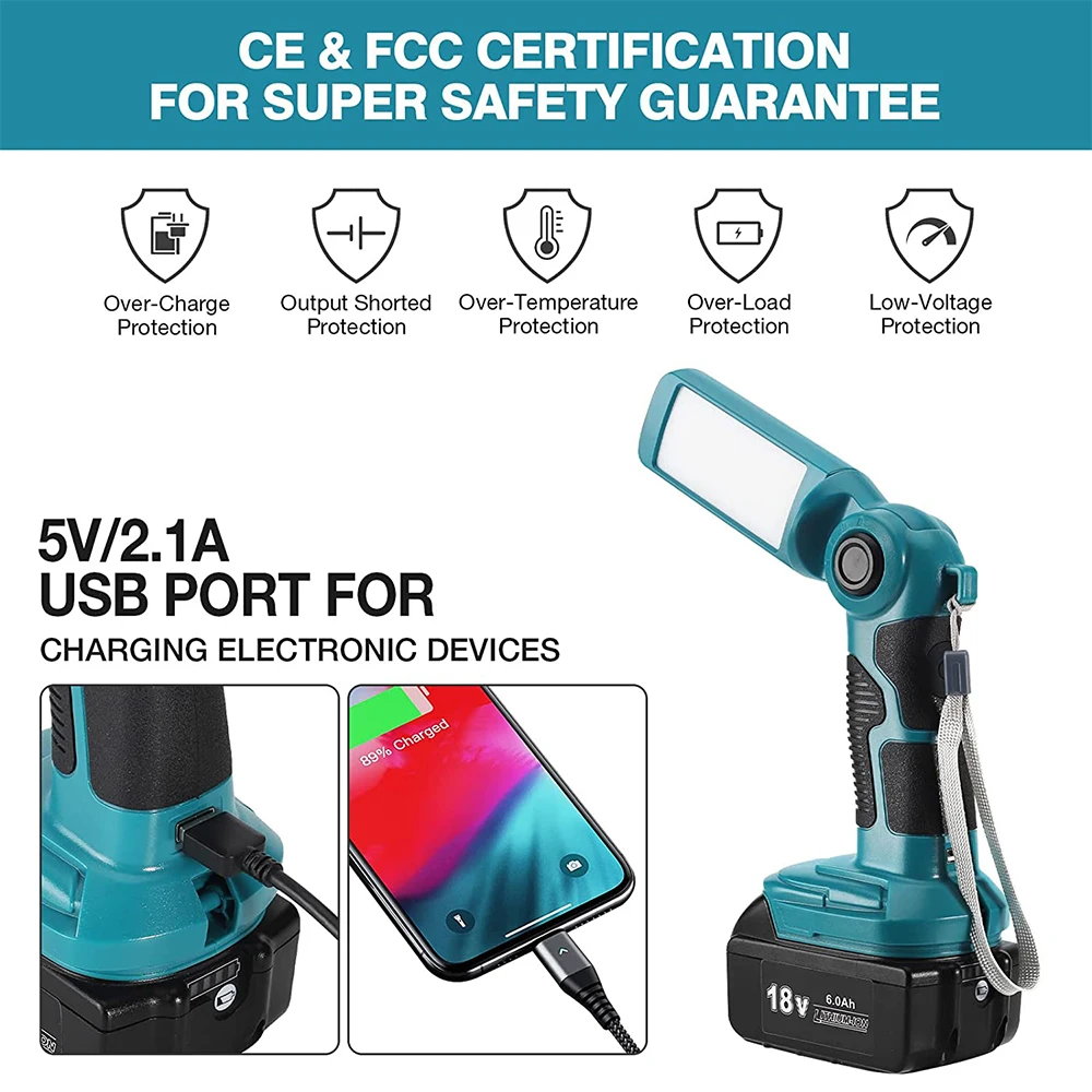 Professional LED Work Light for Makita 18V Li-ion Battery with USB Charging Port for Jobsite, Car Repairing, Camping, Emergency